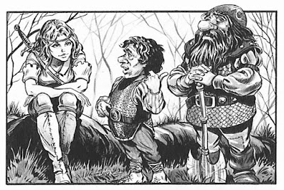 | Elfa, halfling e anão - arte de Larry Elmore |